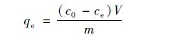 式中, c0(mg ·L-1)表示初始氟離子濃度, ce(mg ·L-1)表示剩余氟離子濃度, V(mL)表示氟離子溶液體積, m(mg)表示投加的吸附劑質(zhì)量, qe(mg ·g-1)表示氟離子的吸附量.