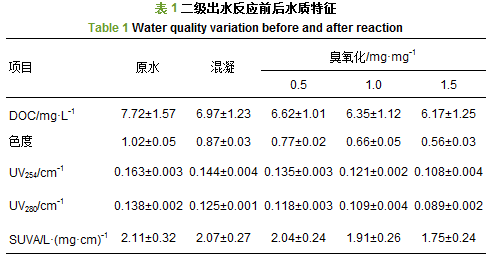 污水廠二級(jí)出水中難凝聚有機(jī)物臭氧化特性