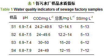 二級出水樣品來自西安市第四、第五、第八污水廠生化處理過程的二級出水, (分別標(biāo)記樣品為S1~S4), 其水質(zhì)指標(biāo)如表 1所示, 其中pH由精密pH酸度計(jì)(pHS-3S, 上海)測得, COD、總氮、SS分別按高錳酸鉀(標(biāo)準(zhǔn)號:GB/T 15456-2008)、納氏試劑分光光度法(標(biāo)準(zhǔn)號:HJ 535-2009)、重量法(標(biāo)準(zhǔn)號:GB/T 11901-1989)等國標(biāo)測定.水樣經(jīng)0.45 μm濾膜過濾處理儲藏于4℃冰箱中備用.