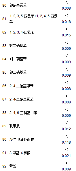 如表 2所示, 監(jiān)測項(xiàng)目總共125種, 其中對-二甲苯與間-二甲苯以及1, 2, 3, 5-四氯苯與1, 2, 4, 5-四氯苯均無法色譜分離也無法通過碎片離子進(jìn)行區(qū)分.