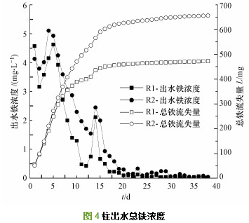 3.3 ZVI/Sand填充柱出水總鐵濃度變化規(guī)律