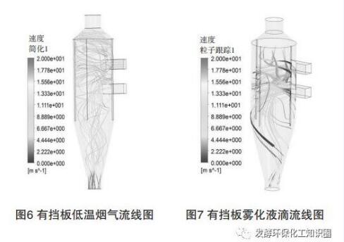 5)低溫?zé)煔鈴撵F化噴嘴后分幾路沿切線方向進(jìn)入蒸發(fā)器,為霧滴蒸發(fā)提供持續(xù)熱源,同時(shí),由于切向進(jìn)風(fēng)煙氣沿筒壁速度快,使霧滴不碰壁,避免結(jié)垢。采用如此分級(jí)煙氣進(jìn)入的設(shè)計(jì),一方面,有利于霧滴在煙氣中均布;另一方面,可減少高溫?zé)煔獾氖褂昧,?jié)約運(yùn)行成本。