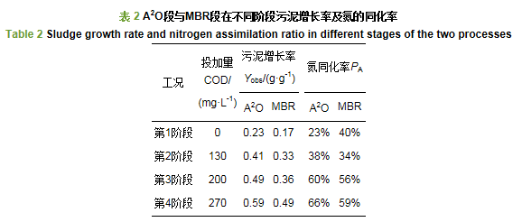 3.2 污泥增量及氮的同化比例