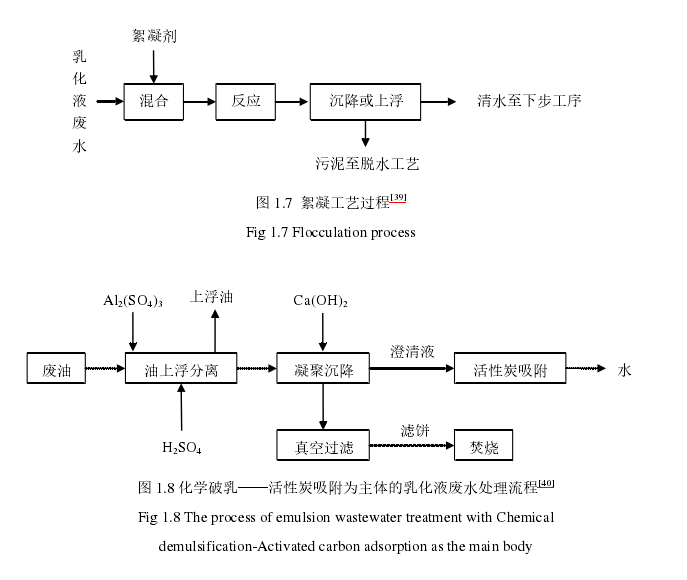 凝聚法或稱混凝法通過向乳化液廢水中投加的絮凝劑在水中的水解和聚合作用使油滴尺寸變大從水中脫出,鐵鹽、鋁鹽是常用的絮凝劑,凝聚效率較鹽析的高,處理設(shè)備較物理法的簡單;酸化法通過調(diào)節(jié)乳化液廢水的pH于3~4之間使油水界面上的表面活性劑與酸反應(yīng)生成不溶于水的物質(zhì),實(shí)現(xiàn)破乳。