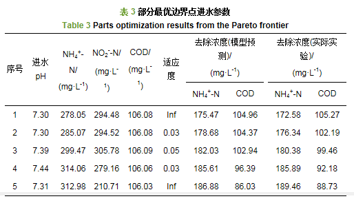 4) 在出水NH4+-N去除和COD去除預測模型上, 利用NSGA-Ⅱ建立了厭氧氨氧化與反硝化協(xié)同實現(xiàn)同步脫氮除碳優(yōu)化模型, 優(yōu)化結(jié)果表明, 該模型給出的解決方案有效可行, 分析各進水參數(shù)之間的關(guān)系得出, 隨著出水NH4+-N去除能力的提升, 應當提高進水NH4+-N/NO2--N和降低COD/ NH4+-N的比值。(來源:環(huán)境科學學報 作者:謝彬)