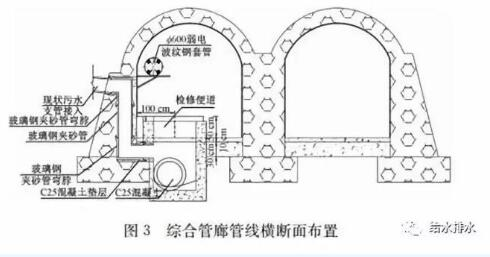 受到河道現(xiàn)狀情況限制,雨、污水管道和弱電纜線須同處一艙,當(dāng)暴雨來臨超過洪水位時(shí),可能存在雨水從井蓋滲漏至污水管道和雨水沖毀弱電線纜的情況。另外,弱電波紋鋼套管長(zhǎng)期處于潮濕環(huán)境,易受腐蝕。