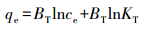 式中, KL、KF、BT和KT分別為Langmuir、Freundlich和Temkin模型中與吸附有關(guān)的常數(shù); n為Freundlich吸附指數(shù), 與吸附劑的性質(zhì)有關(guān).