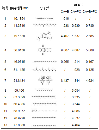 圖 8不同體系反應(yīng)殘余物的GC圖譜