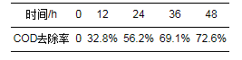 繼續(xù)進(jìn)行高COD的模擬印染廢水的降解試驗(yàn),收集反應(yīng)96 h后剩余COD的數(shù)據(jù)并計(jì)算相應(yīng)COD的去除率(圖 5).由圖 5可見,CA+B、CA+PC和CA+B+PC的COD去除率分別為13.0%、42.9%、84.7%.CA+PC與CA+B+PC對(duì)COD去除率的不同在于光合細(xì)菌的作用.光催化劑產(chǎn)生的自由基由于受到模擬廢水中加入的NaHCO3、NH4Cl等的影響及氧氣的限制,并不能完全礦化反應(yīng)體系中的有機(jī)物,累積中間產(chǎn)物使得COD去除率較低(Konstantinou et al., 2004;Guillard et al., 2003).相反地,在光催化結(jié)合微生物反應(yīng)體系中,染料隨光催化降解產(chǎn)生的中間產(chǎn)物和可生化降解的葡萄糖一起進(jìn)入復(fù)合材料內(nèi)部,迅速被光合細(xì)菌降解、礦化.