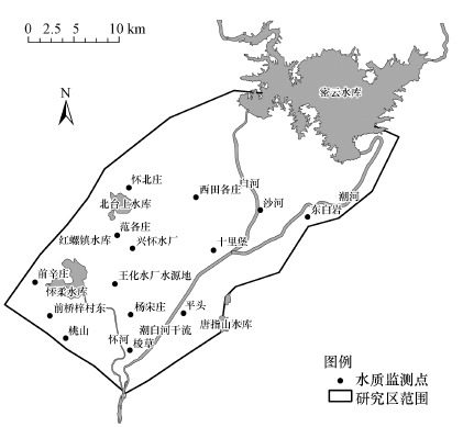 研究區(qū)位于北京市東北部, 研究范圍為北京市密云縣和懷柔區(qū)的平原區(qū)(圖 1), 面積約703 km2.研究區(qū)內(nèi)地形總的趨勢(shì)是北部狹窄、南部開(kāi)闊, 地形由北向南傾斜.區(qū)內(nèi)海拔一般在50 m, 其東北、西北和北部三面環(huán)山, 南面地勢(shì)平坦.研究區(qū)多年平均降雨量為656.5 mm, 其中, 2004—2014年的年均降水量為565 mm.年內(nèi)降水主要集中在5—9月的汛期, 歷年平均汛期降水量占到年降水總量的72%~85%, 其中, 6—8月的降水量占到年總降水量的65%, 在7、8月常有暴雨出現(xiàn).