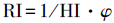 Morris和Foster(2000)將地下水污染風(fēng)險(xiǎn)定義為“含水層中的地下水將被地表上的活動(dòng)污染到不可接受的水平”.這種方法利用地下污染物負(fù)荷與其對(duì)應(yīng)地點(diǎn)的含水層污染脆弱性的相互作用來(lái)描述“風(fēng)險(xiǎn)強(qiáng)度”(Dimitriou et al., 2008; Mimi et al., 2009; Zwahlen et al., 2000), 這種風(fēng)險(xiǎn)強(qiáng)度常用風(fēng)險(xiǎn)強(qiáng)度指數(shù)(式(4))來(lái)表示, 最終的地下水污染風(fēng)險(xiǎn)等級(jí)根據(jù)得到的RI指數(shù)進(jìn)行分級(jí).