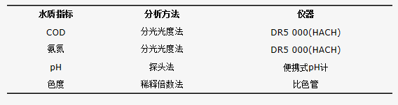 表1 水質(zhì)指標(biāo)及分析方法