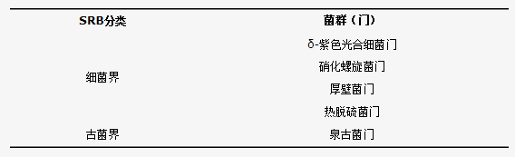 據(jù)不完全統(tǒng)計,已知的SRB共有40個屬137個種,分屬細菌界和古菌界(見表1),其中大多數(shù)屬于δ-變形菌綱。管道中SRB的菌群結構與廢水處理中有所不同:ITO等發(fā)現(xiàn),在管道生物膜中,Desulfobulbus是SRB的優(yōu)勢菌屬,占總SRB數(shù)量的23%,該菌屬以利用丙酸為主;而廢水處理中最主要的SRB為Desulfovibrio和Desulfotomaculum,Desulfovibrio是典型的氫營養(yǎng)型SRB。