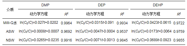 表 2 不同介質(zhì)下的PAEs光降解動(dòng)力學(xué)方程