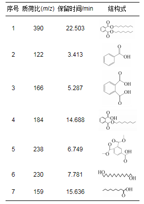 表 3 GC-MS的檢測(cè)產(chǎn)物