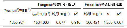 表 3 混合藻硅藻粗多糖對(duì)Pb2+吸附的Langmuir、Freundlich等溫吸附模型系數(shù)