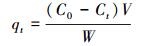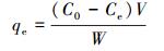 式中, C0、Ct、Ce分別為初始時(shí)刻、吸附時(shí)間為t、吸附平衡時(shí)的吸附量(mg·g-1), V為溶液體積(L), W為吸附劑的質(zhì)量(g).