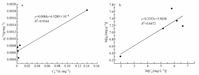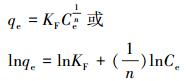 常見(jiàn)的吸附等溫模型為L(zhǎng)angmuir等溫式和Freundlich等溫式, 其線性表達(dá)式分別為:
