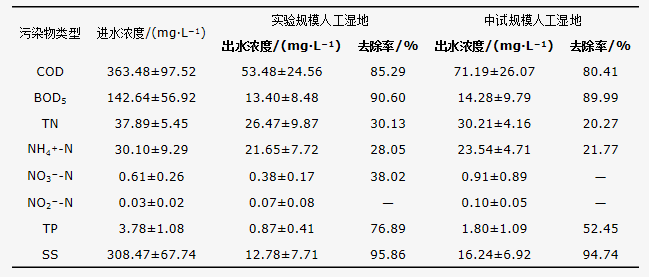 表1 不同尺度潛流人工濕地的污水凈化效果