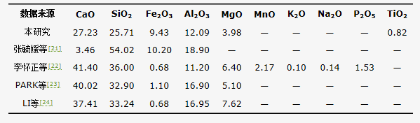 表2 爐渣的主要氧化物成分的質量分數(shù)