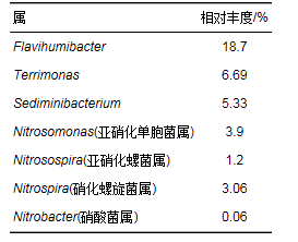 表 5 樣本1在屬水平上鑒定出的優(yōu)勢菌、AOB、NOB及其豐度