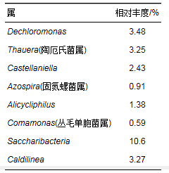 表 6 樣本2在屬水平上鑒定出的反硝化脫氮作用相關(guān)菌屬及其豐度