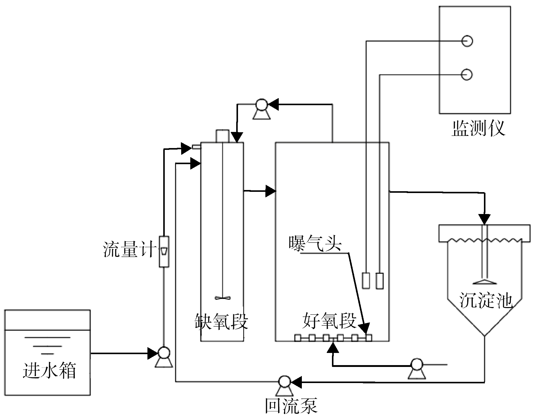 圖1 實驗室AO反應(yīng)器流程圖