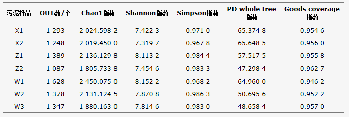 表1 活性污泥中菌群多樣性指數(shù)