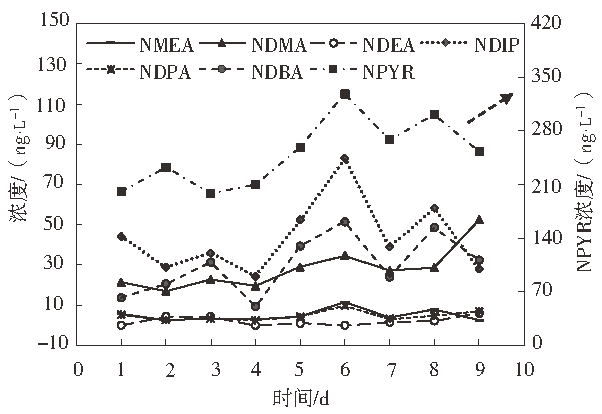 圖3 二級出水中亞硝胺類物質(zhì)的分布