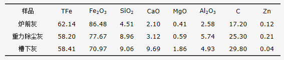 表1 各種粉塵的化學(xué)成分(質(zhì)量分數(shù))
