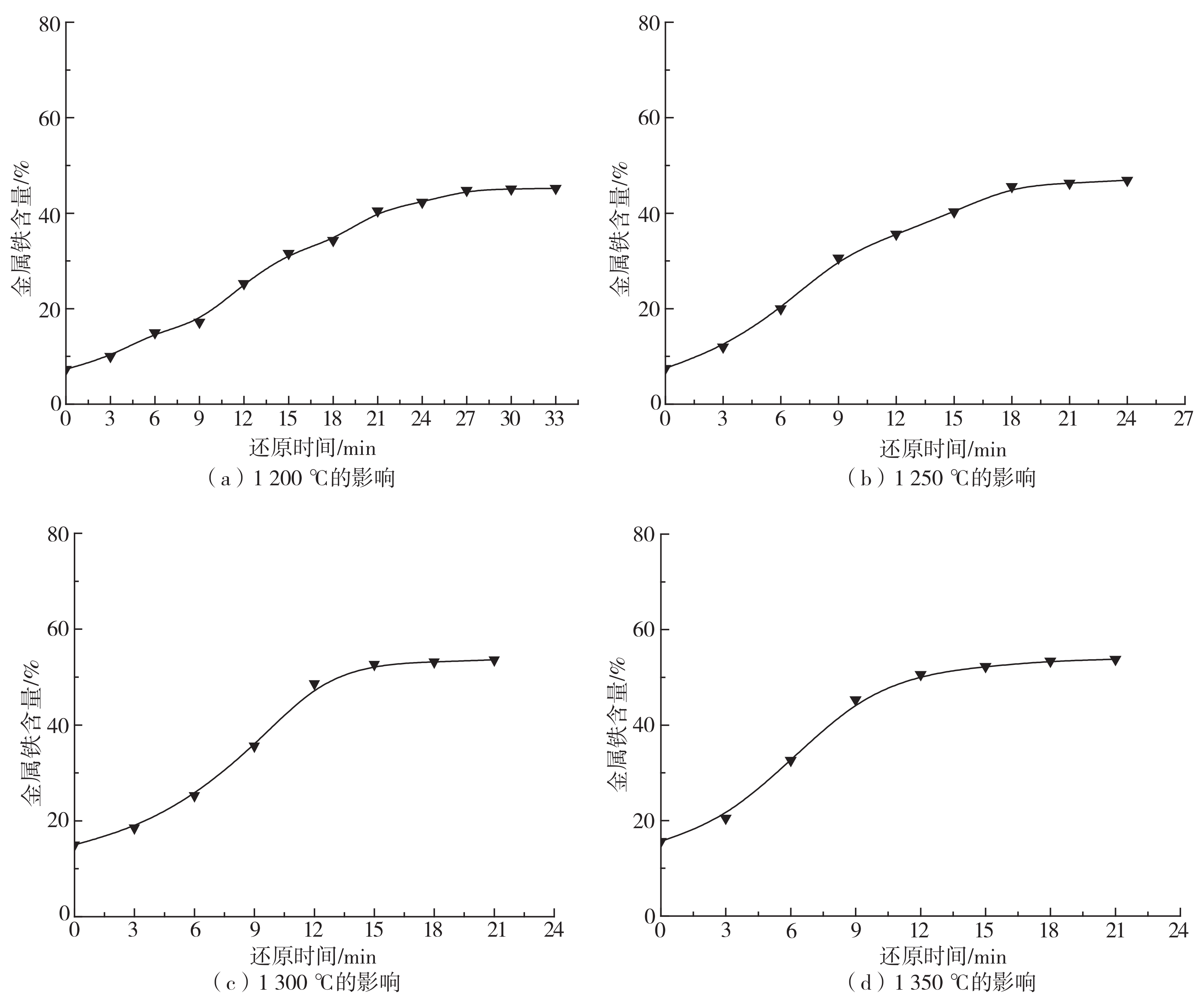 2.1.3 還原溫度對球團中金屬鐵含量的影響