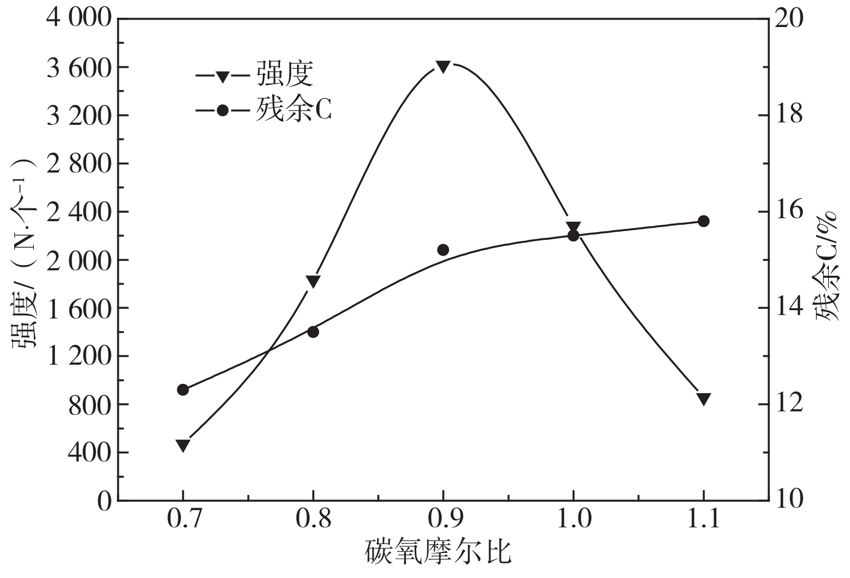 圖4 碳氧摩爾比對球團強度的影響