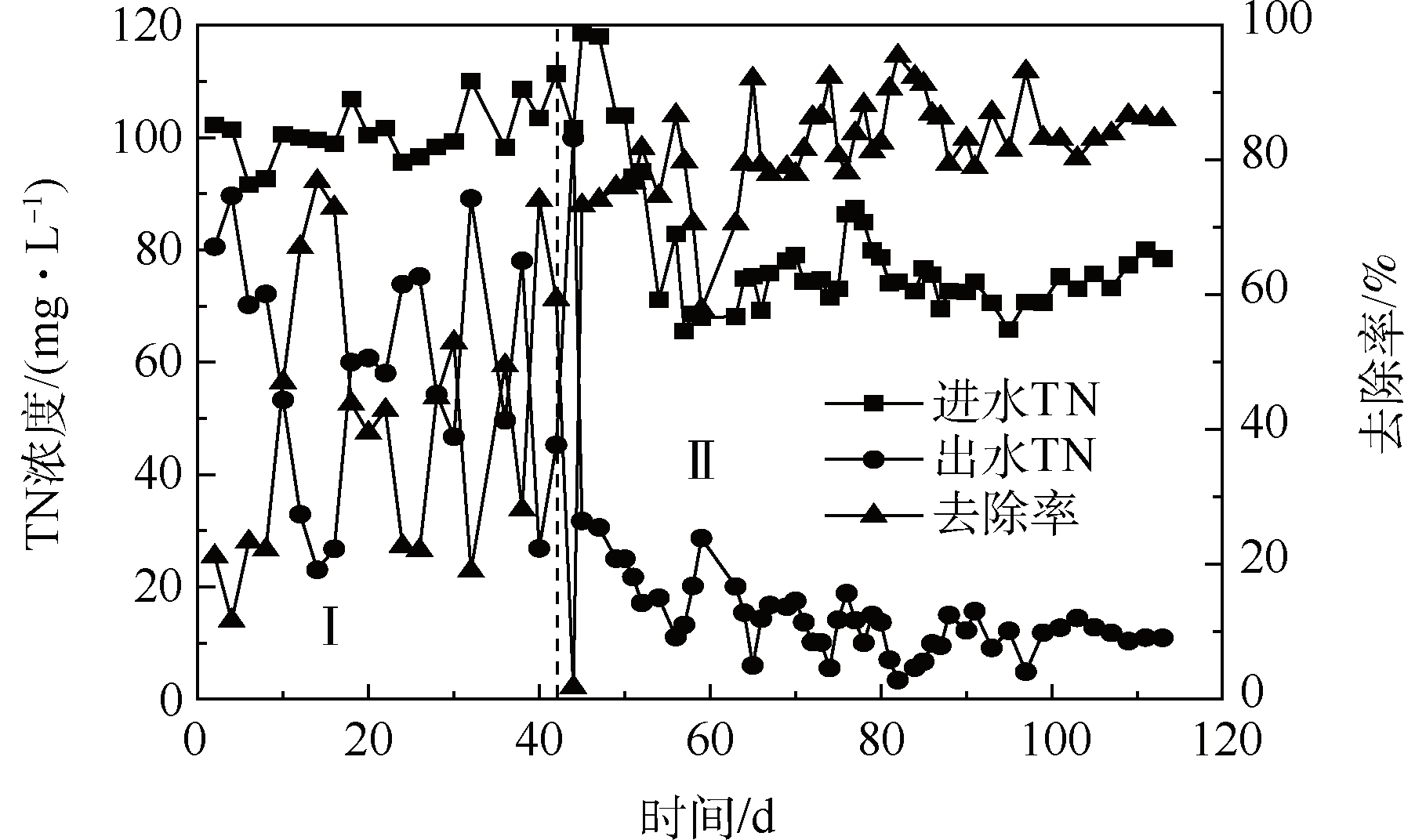 圖4 階段I、階段II TN濃度及其去除率隨時間的變化