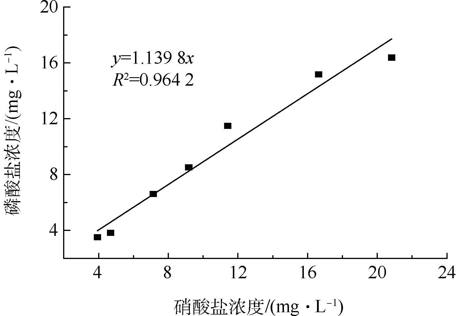 圖7 硝酸鹽去除量與磷酸鹽吸收量之間的關(guān)系