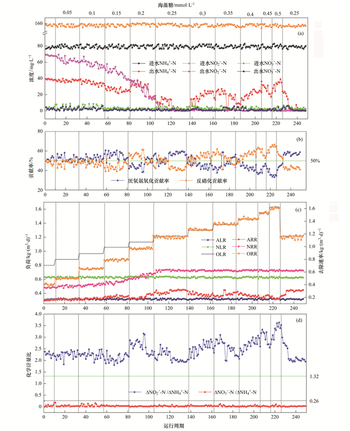 海藻糖作為一種相容性溶質(zhì)可以調(diào)節(jié)微生物滲透壓, 添加海藻糖強(qiáng)化SAD工藝處理高鹽廢水鮮見報(bào)道.本研究通過按濃度梯度逐步提高海藻糖濃度, 探討了海藻糖對(duì)SAD工藝處理高鹽水脫氮除碳效能的影響, 并利用動(dòng)力學(xué)分析了反應(yīng)穩(wěn)定運(yùn)行的相關(guān)策略, 以期為強(qiáng)化SAD工藝處理高鹽廢水提供理論依據(jù).