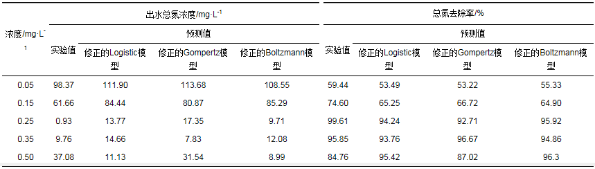 對(duì)于單周期內(nèi)基質(zhì)降解過程動(dòng)力學(xué)模型, 不同的數(shù)學(xué)動(dòng)力學(xué)模型運(yùn)用于不同的生物反應(yīng)器.修正的Logistic模型、修正的Boltzman模型和修正的Gompertz模型適合描述SBR反應(yīng)器中ANAMMOX單周期內(nèi)基質(zhì)的降解過程.