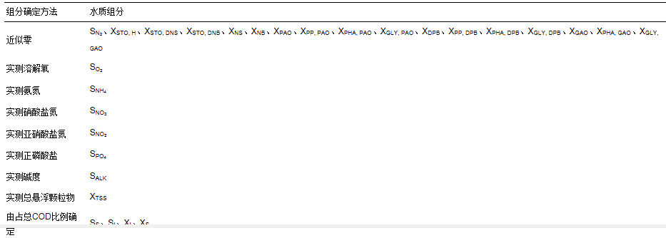 表 4 進(jìn)水水質(zhì)組分的確定方法