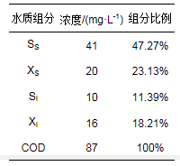 表 7 污水處理廠生物池進(jìn)水COD組分測定