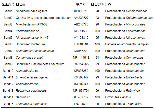 表 3 固相反硝化濾池DGGE凝膠條帶回收序列分析結(jié)果