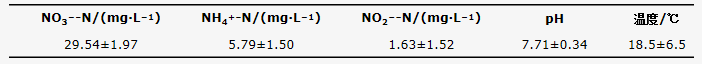 實驗水質參照華北地區(qū)中度污染的地下水水質,使用KNO3、NH4Cl和NaNO2進行配制,如表1所示。本研究所用化學藥品均為分析純。