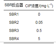 環(huán)丙沙星(Ciprofloxacin, CIP)為分析純(純度>98%), 購買自南京京德寶生化器材有限公司;甲醇為HPLC級試劑;其余化學(xué)試劑均為分析純.實驗之前配置1000 mg · L-1的CIP儲備液備用.根據(jù)之前CIP在城市污水中的檢出濃度及抗生素類藥物使用量的增加, 本研究設(shè)置了不同濃度CIP來探究CIP對SBR潛在的毒性影響(表 1).