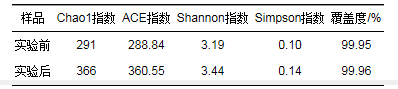 表 1 CANON系統(tǒng)實驗前后微生物多樣性變化