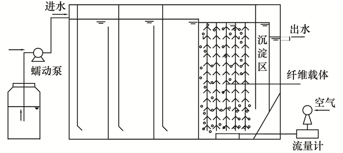 采用人工配水模擬城市污水, 以(NH4)2SO4為氮源(50 mg ·L-1左右), 以乙酸鈉為碳源, 加碳酸氫鈉以調(diào)節(jié)pH至7.5左右.另外還包括生物所需的其他營養(yǎng)元素氯化鈣(10 mg ·L-1)、硫酸鎂(10 mg ·L-1)、磷酸氫二鉀(4 mg ·L-1)及微量元素.微量元素分為微量元素Ⅰ和微量元素Ⅱ, 微量元素按照1mL ·L-1添加.微量元素Ⅰ組分(g ·L-1): EDTA 5, FeSO4 5;微量元素Ⅱ組分(g ·L-1): EDTA 15, ZnSO4 ·7H2O 0.43, CoCl2 ·6H2O 0.24, MnCl2 ·4H2O 0.99, CuSO4 ·5H2O 0.25, NaMoO4 ·2H2O 0.22, NiCl2 ·6H2O 0.19, NaSeO4 ·10H2O 0.21, H3BO4 0.014.