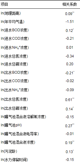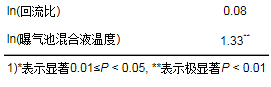 由于partial mantel test只能逐一分析各環(huán)境因子與群落結(jié)構(gòu)的相關(guān)性或?qū)⒍鄠(gè)環(huán)境因子作為一個(gè)整體考察其與群落結(jié)構(gòu)的相關(guān)性, 為了探究不同環(huán)境因子對(duì)群落結(jié)構(gòu)影響的相對(duì)重要性, 本研究使用相同的影響因子組合構(gòu)建了MRM模型.結(jié)果表明, 模型顯著且擬合度較高(R2=0.92, P<0.01).對(duì)于單個(gè)因子而言(表 2), 曝氣池混合液溫度是造成群落存在差異最重要的因素.環(huán)境溫度影響生物處理構(gòu)筑物中生物化學(xué)過程的速度和趨向, 影響微生物的新陳代謝、進(jìn)化速率等生理活動(dòng), 適宜的溫度能夠促進(jìn)、強(qiáng)化微生物的生理活動(dòng), 反之, 能夠減弱甚至破壞微生物的生理活動(dòng), 導(dǎo)致微生物形態(tài)和生理特性的改變, 甚至可能導(dǎo)致微生物死亡, 進(jìn)而影響活性污泥的微生物種群的形成和發(fā)展.