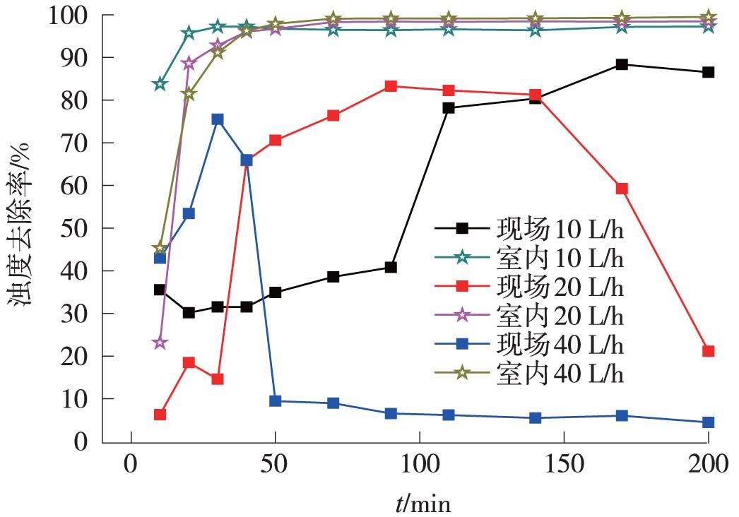 圖19 室內(nèi)和現(xiàn)場(chǎng)濁度去除效果比