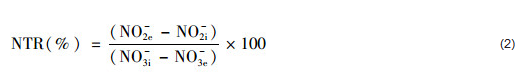 亞硝酸鹽積累率(NTR)用于表征SBR反應(yīng)器缺氧段硝酸鹽還原過程中亞硝酸鹽的生成情況.