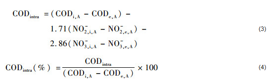 式中, CODi, A、NO2, i, A-和NO3, i, A-分別為厭氧段初時(shí)COD、NO2--N和NO3--N的濃度, mg ·L-1; CODe, A、NO2, e, A-和NO3, e, A-分別為厭氧段末時(shí)COD、NO2--N和NO3--N的濃度, mg ·L-1; 2.86和1.71為理論上單位NO3--N和NO2--N分別進(jìn)行外源反硝化所消耗的COD值, 以N/COD計(jì)(質(zhì)量比).