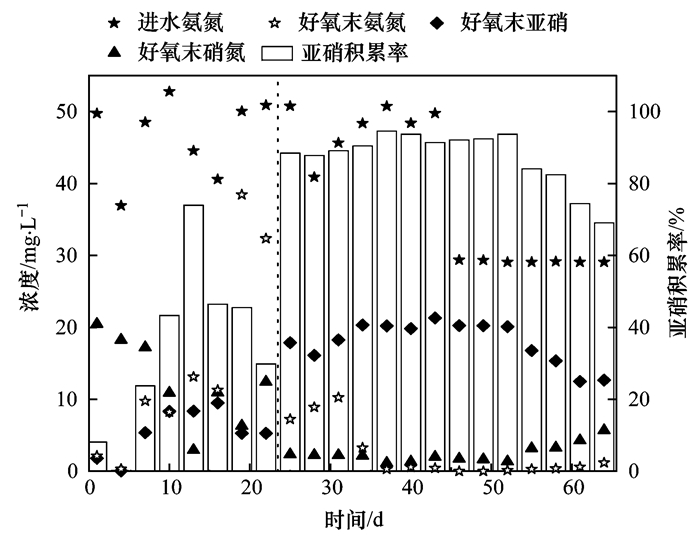 Yuan等的研究指出, 污泥發(fā)酵混合物的投加促進(jìn)了厭氧釋磷的過程, 導(dǎo)致在好氧段聚磷菌過量利用溶解氧進(jìn)行吸磷與NOB競爭溶解氧, 使得NOB一直處于抑制狀態(tài).但在本實(shí)驗(yàn)中, 污泥發(fā)酵混合物作為碳源僅在好氧段結(jié)束后投加, 并未促進(jìn)厭氧釋磷的過程, 因此這并不是反應(yīng)器內(nèi)產(chǎn)生短程硝化現(xiàn)象的原因.
