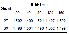 在濾柱運行至27 d和39 d時分別取20、40、80、120和160 cm處的濾料, 經高溫滅菌后進行吸附性能分析實驗, 由表 1分析知, 原氨氮濃度為1.500 mg·L-1, 各處濾料吸附后氨氮濃度均約為1.500 mg·L-1, 故濾料在27 d時已經吸附飽和, 此后濾柱中的氮素損失與濾料的吸附作用無關, 而是由ANAMMOX過程造成的.結合圖 5分析知, 濾柱在39 d時特征值約為1.24, 在1<ΔNH4+-N/ΔNO3--N<8的理論范圍內, 且連續(xù)穩(wěn)定.因此, 低溫生物除鐵錳硝化耦合CANON工藝經過40 d的培養(yǎng)啟動成功.