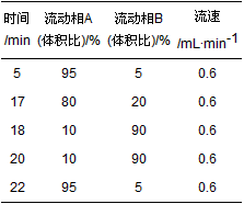 LC檢測條件:柱溫40℃, 流速0.2 mL ·min-1, 流動相A為0.1%甲酸水+2 mmol ·L-1乙酸銨, 流動相B為乙腈, 進樣體積2 μL, 梯度洗脫(洗脫分離步驟見表 1).LC-MS質(zhì)譜測定條件:采用電噴霧離子源(ESI)正離子模式、多反應離子監(jiān)測掃描定量分析目標物.